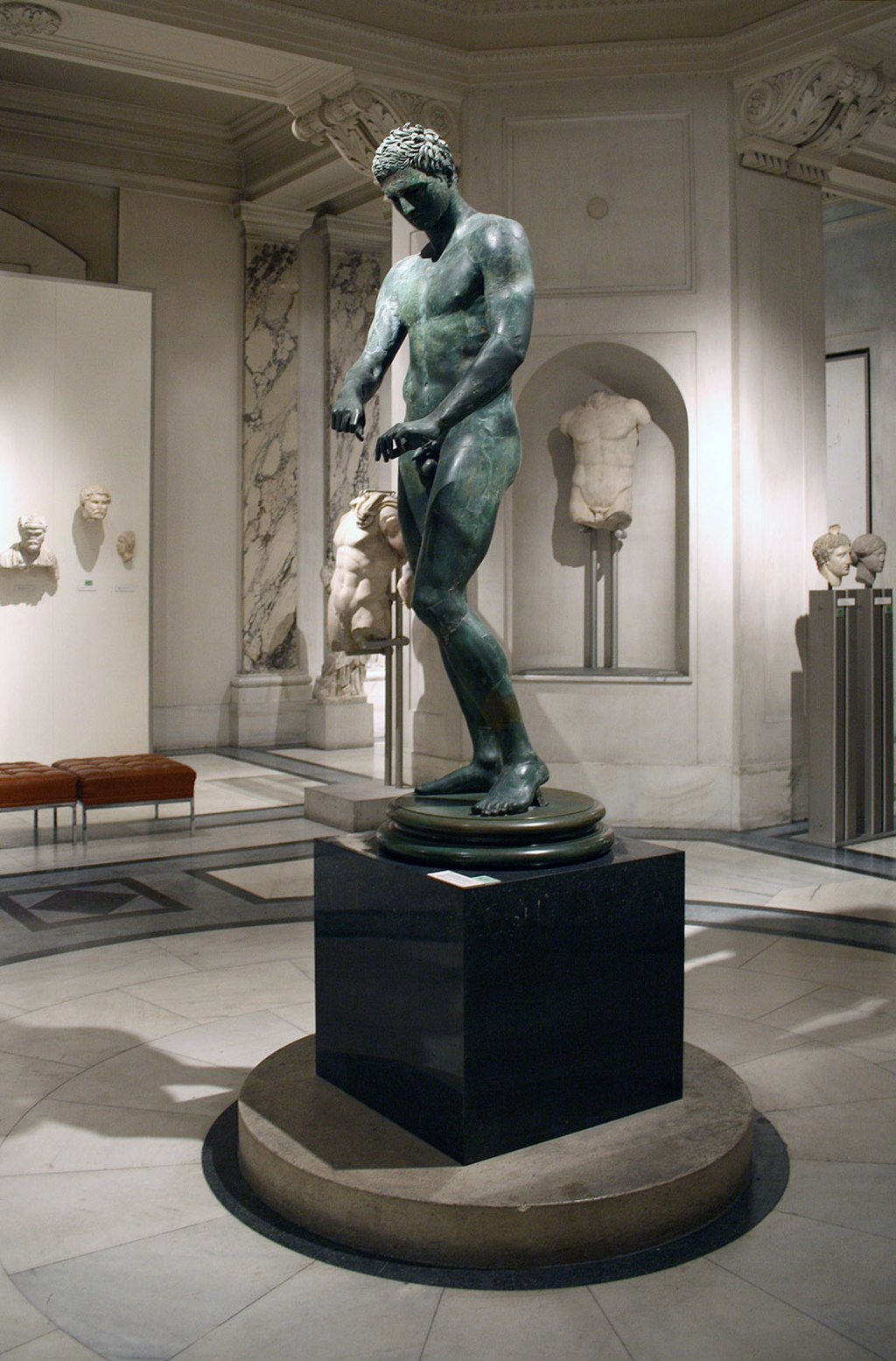 Además del ejemplar del Museo del Vaticano, a finales del siglo XIX se descubrió este ejemplar en bronce. (Éfeso, 1898). La estatua, de bronce, se conservaba en el Kunsthistorisches Museum de Viena (Inv. 3168). Con una altura de 1,92 metros, esta copia romana representa un atleta musculado que, al terminar de rascarse el cuerpo limpia el estrígile, lo sostiene con su mano derecha y quita el sudor y el polvo del rascador con el dedo índice y el pulgar de la mano izquierda. La posición de las piernas y el movimiento de torsión están invertidos con respecto al Apoxiómeno del Vaticano. Contrariamente a este, que parece mirar al vacío, el atleta de Éfeso está concentrado en su tarea.